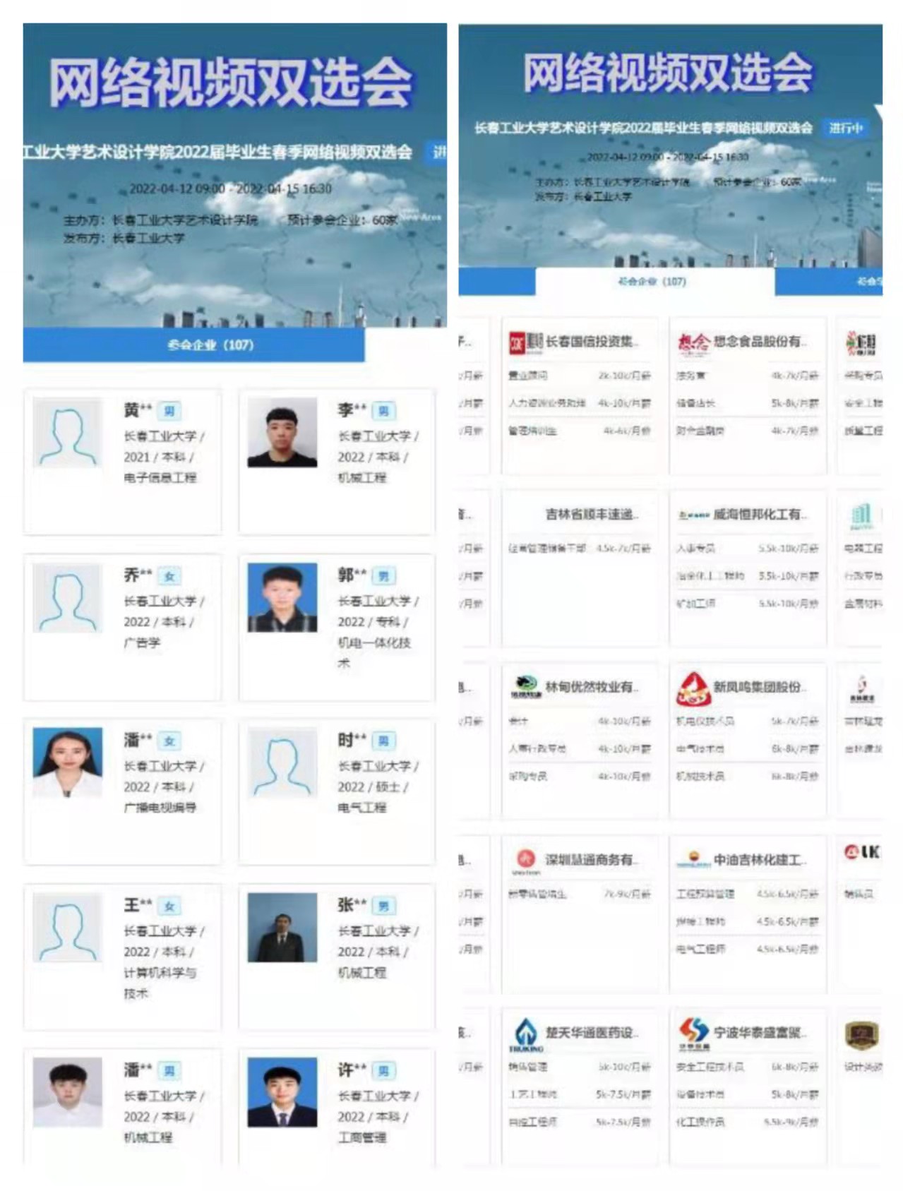 本次春季网络双选会充分体现了艺术为主、专业联合的线上招聘战“疫”优势,呈现出两大特色亮点: