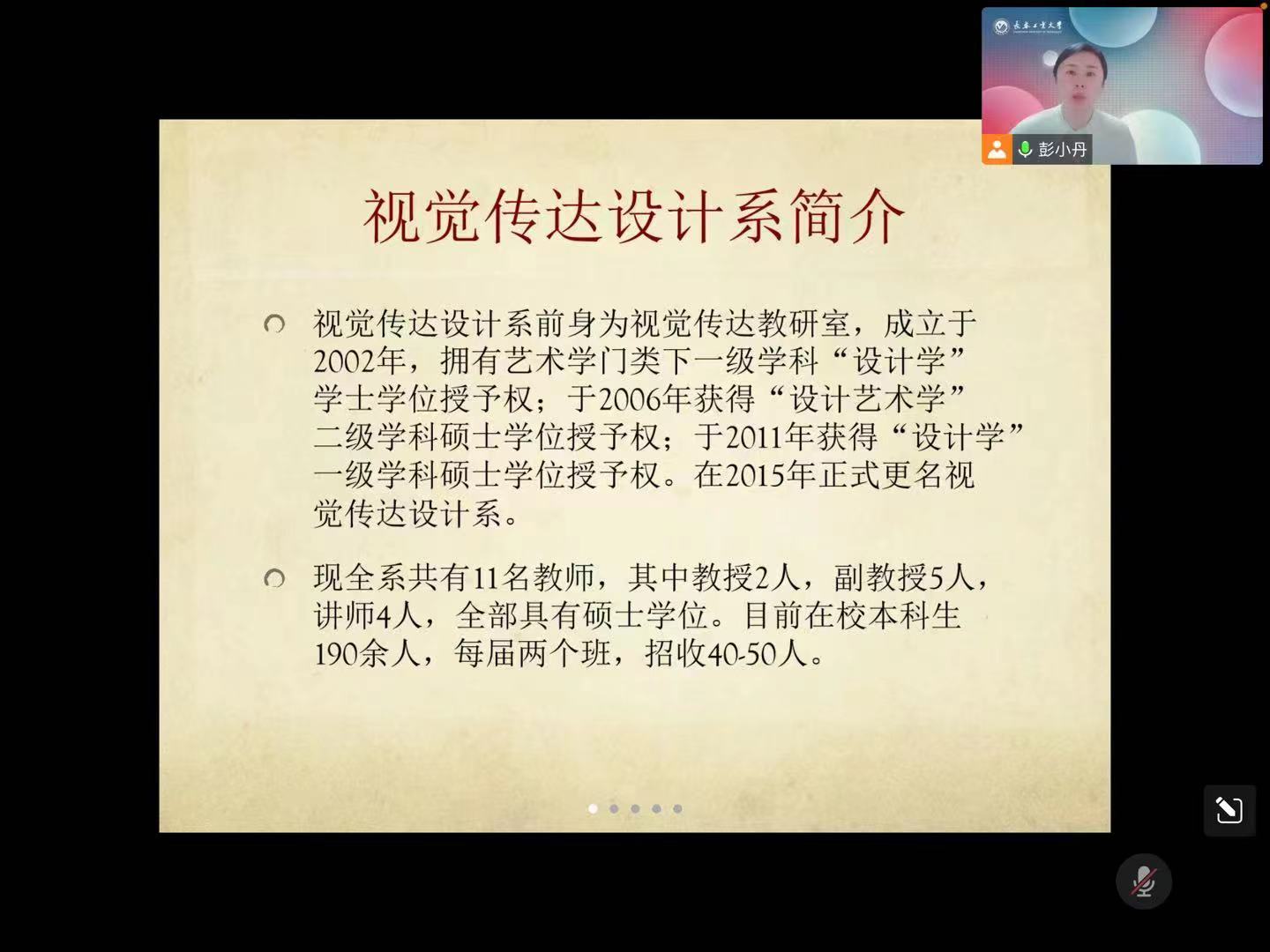 学院网讯(通讯员 于丰硕)9月7日19时,视觉传达设计系专业介绍会暨班导师见面会通过腾讯会议顺利召开,系主任彭晓丹、班导师魏妍妍和张烨烨参会,会议由彭晓丹主持。
