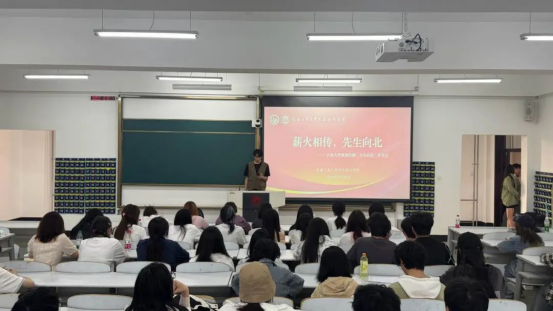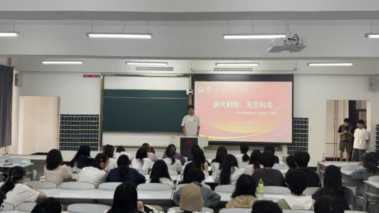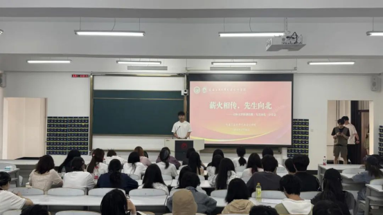 举办“薪火相传,先生向北”吉林大学原创话剧《先生向北》分享会,2024级全体本科生参加。学院青马班代表黄珊、汪赞、李忠杰、肖野、金圣皓分享观剧感悟。