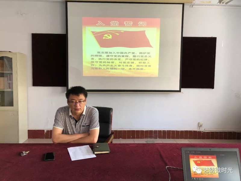 辅导员毕爽带领全会党员和预备党员面对鲜红的党旗,重温入党誓词,铭记党的奋斗历史,不忘入党初心,牢记党的崇高使命,矢志不渝永远奋斗,增强党员的神圣感、使命感、责任感。