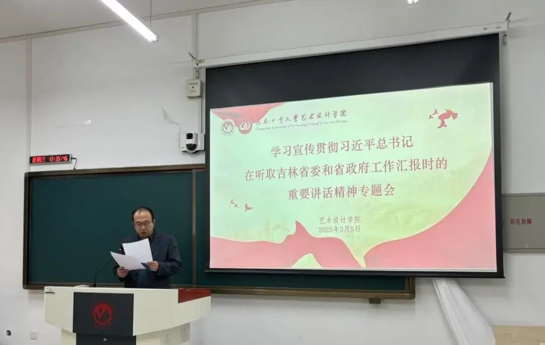 会上,楚玉彪深入领学并解读习近平总书记的重要讲话精神,重点围绕 “新时代推动东北全面振兴”的战略部署,进行了系统性阐释。总书记强调“新时代东北全面振兴要从全面振兴、全方位振兴出发”,结合学院工作实际,楚玉彪提出“三个结合”要求:将理论学习与专业建设结合、将思政教育融入艺术实践、将服务社会与学科发展统筹推进,为下一阶段工作锚定方向。
