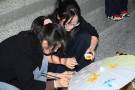 当丙烯颜料在绢布伞面上轻盈游走,沉睡的传统文化符号在青春笔触下渐次苏醒。有的或晕染江南烟雨追思先人,或融入数字技术呈现白菊,更有联动伞群在旋转中再现山水画卷,让传统非遗焕发新活力。