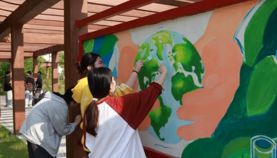 调色盘里盛满的是绿水青山的生态理想,笔触间流淌的是强国有我的青春誓言。志愿者们以“节水循环”为主题,勾勒出清泉绕梁、生生不息的生态文明图景;以“匠人图谱”为蓝本,镌刻下精益求精、追求卓越的时代工匠精神。当“粒粒皆辛”的麦穗与“守护地球”的绿树在长廊相遇,抽象的育人理念在艺术的诠释中变得可触可感,青年学子用创意与汗水共同谱写了一曲美育与劳育交融的青春赞歌。这不仅是一次艺术创作,更是一堂行走的思政课,展现了新时代青年将个人成长融入国家发展的生动实践。